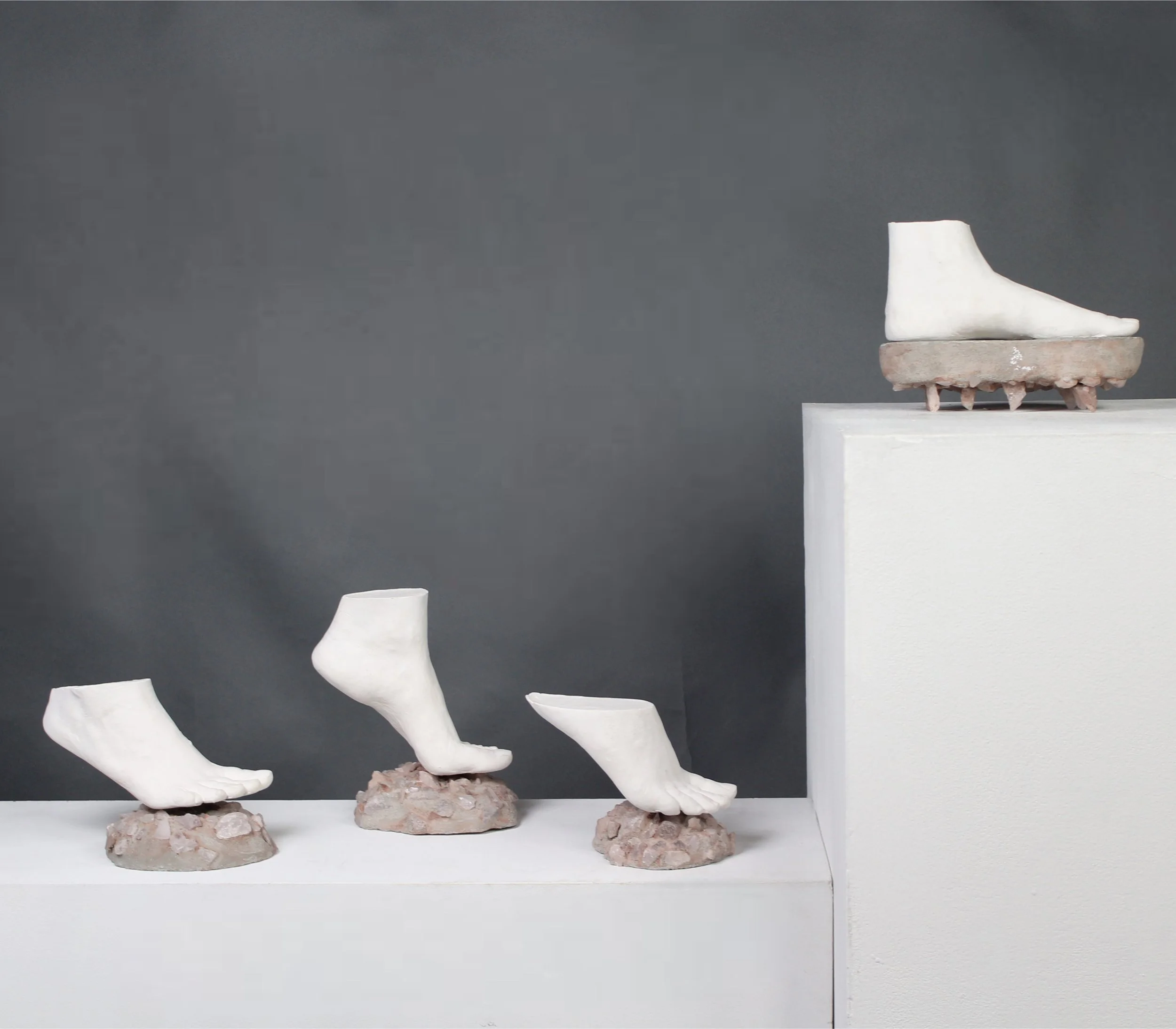 "Watch Your Step" plaster, cement, rose quartz, 2025